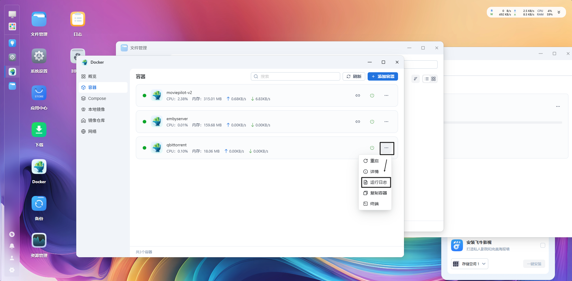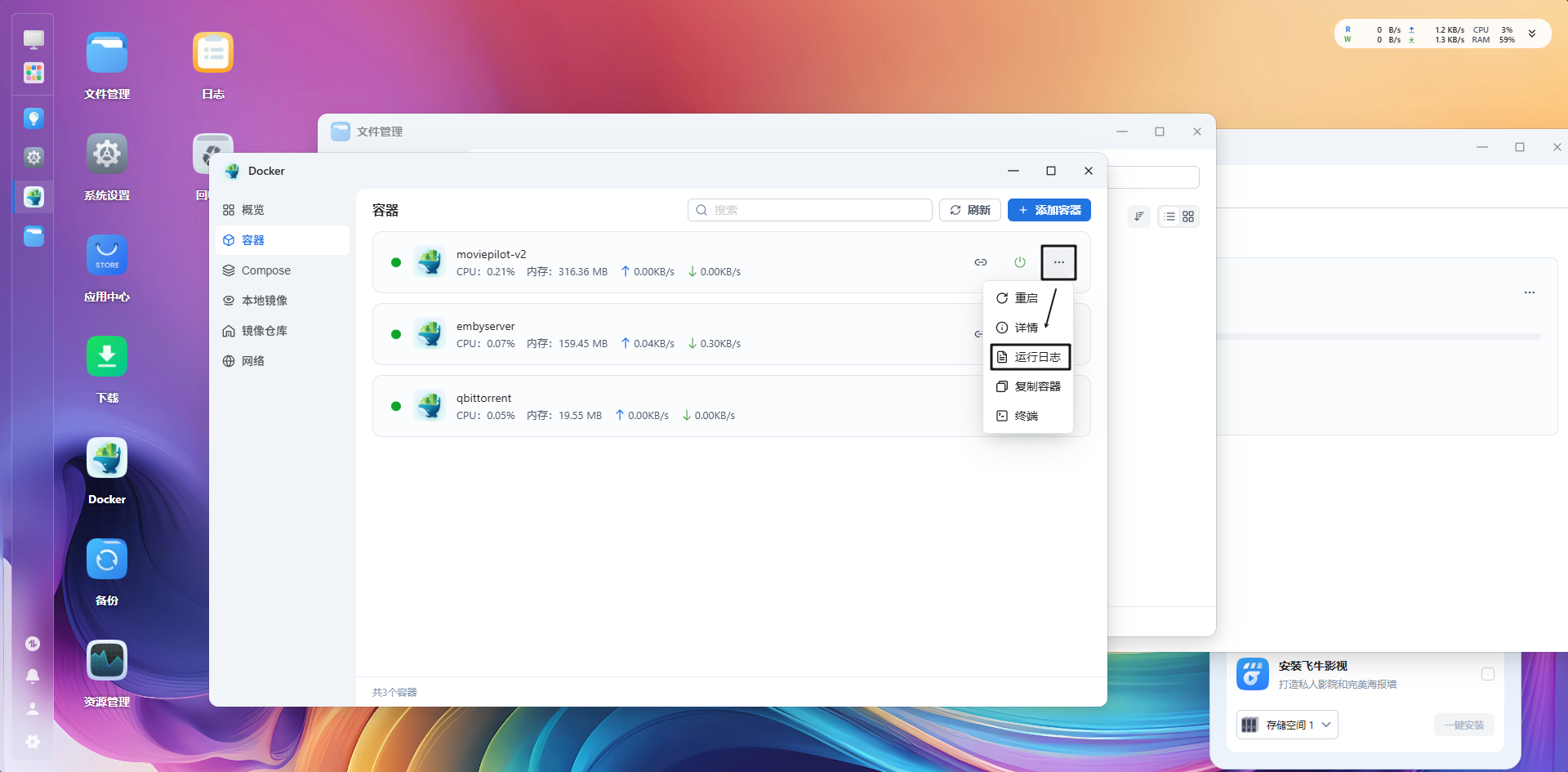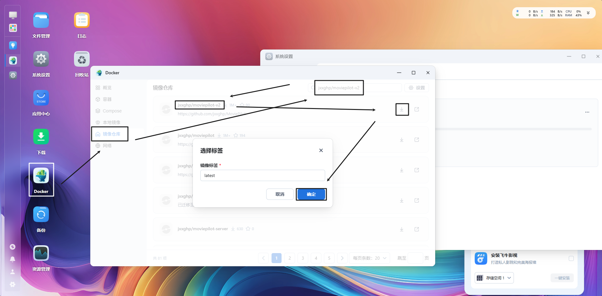 下载docker镜像,基础的是三个MoviePilot,qbittorrent,Emby