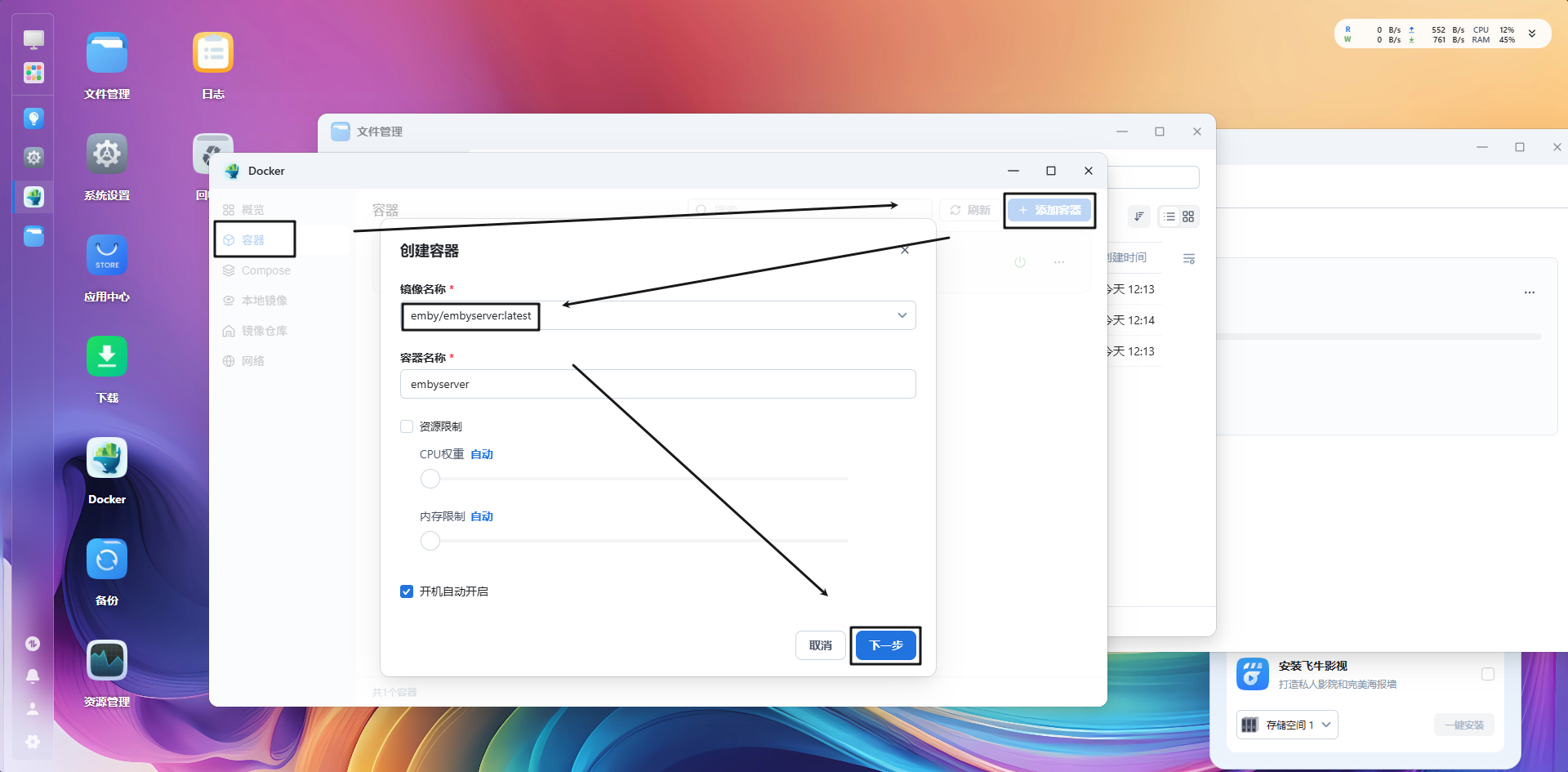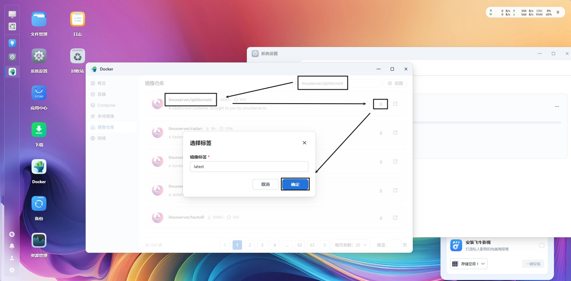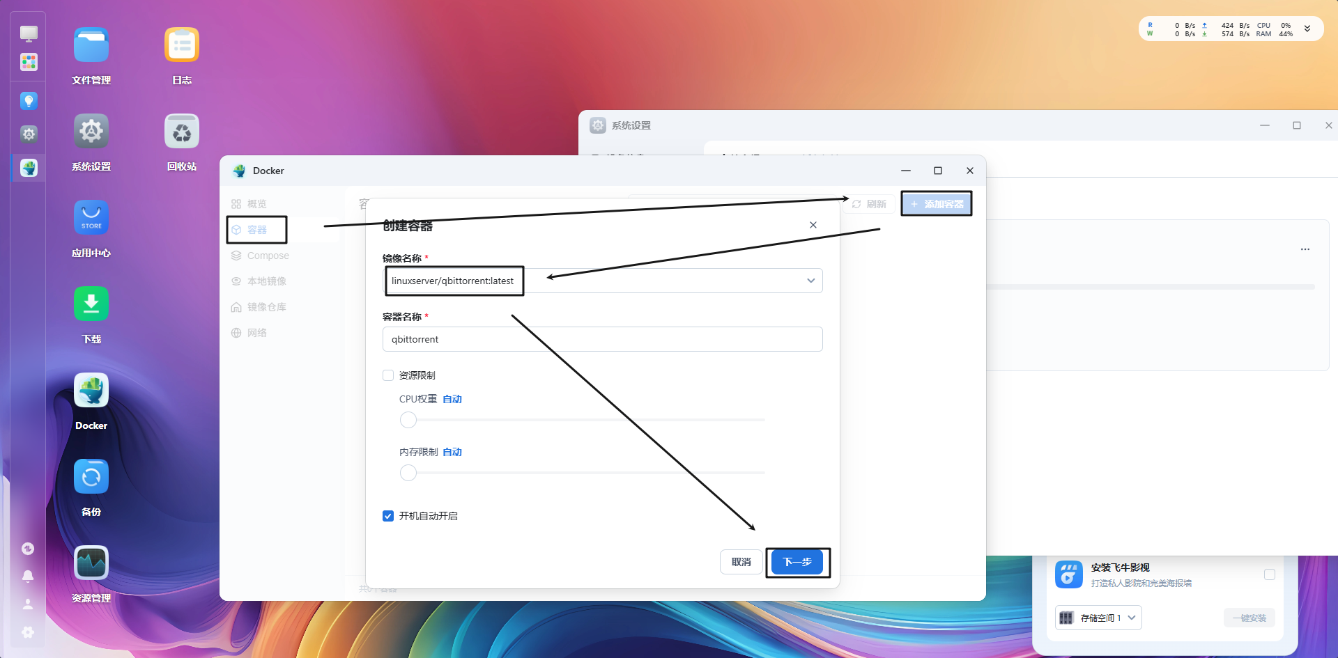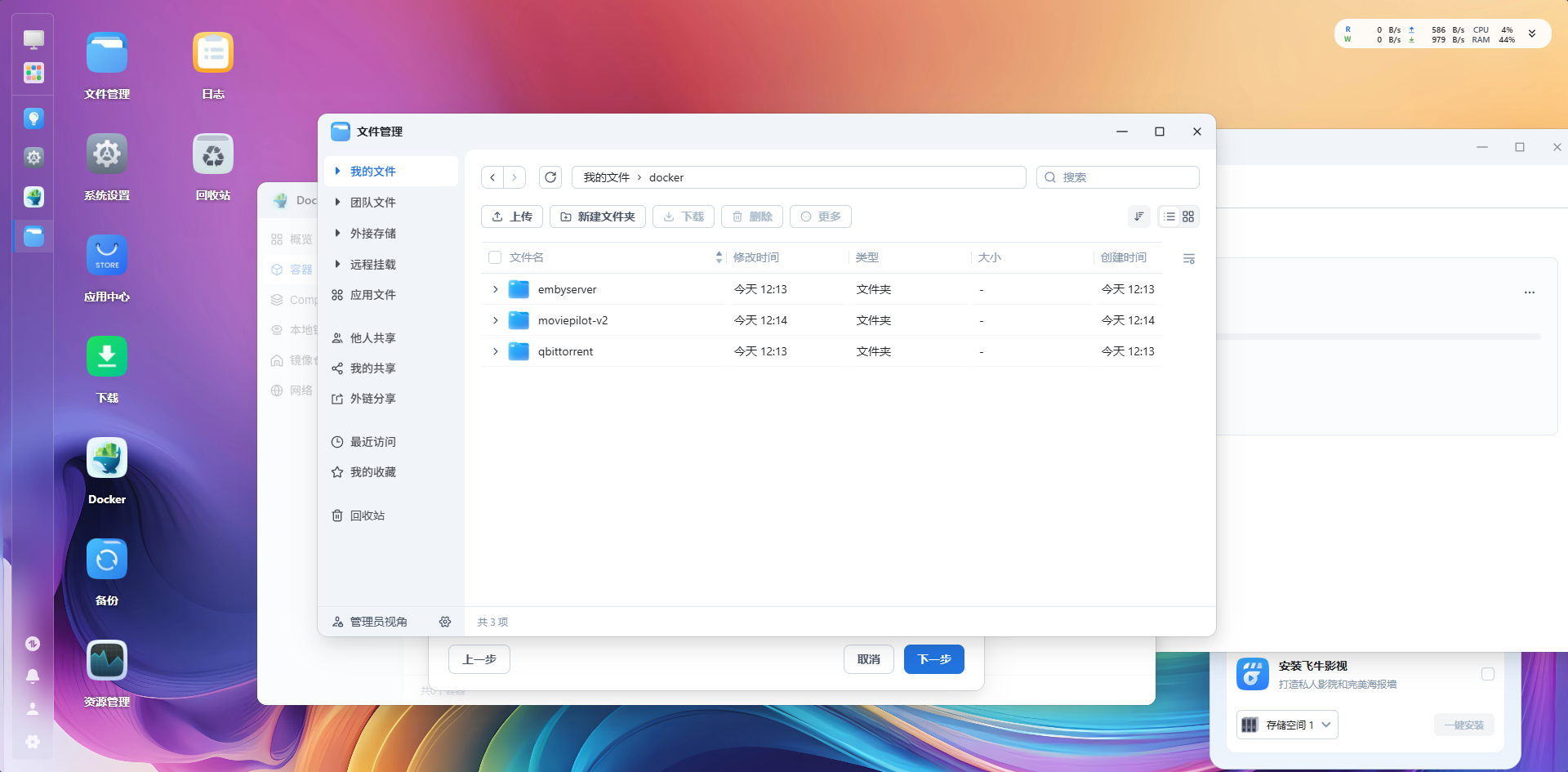 下载docker镜像,基础的是三个MoviePilot,qbittorrent,Emby