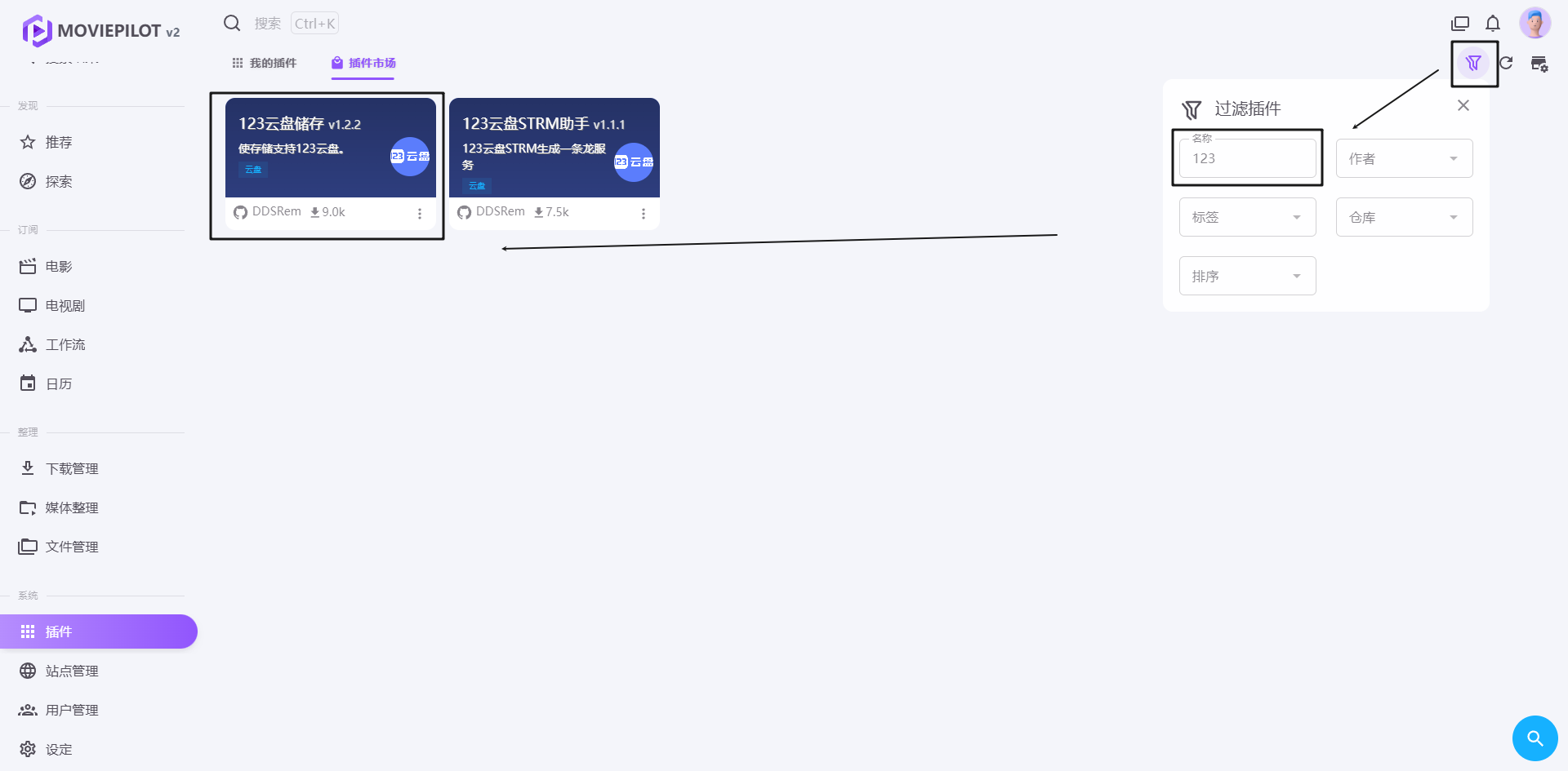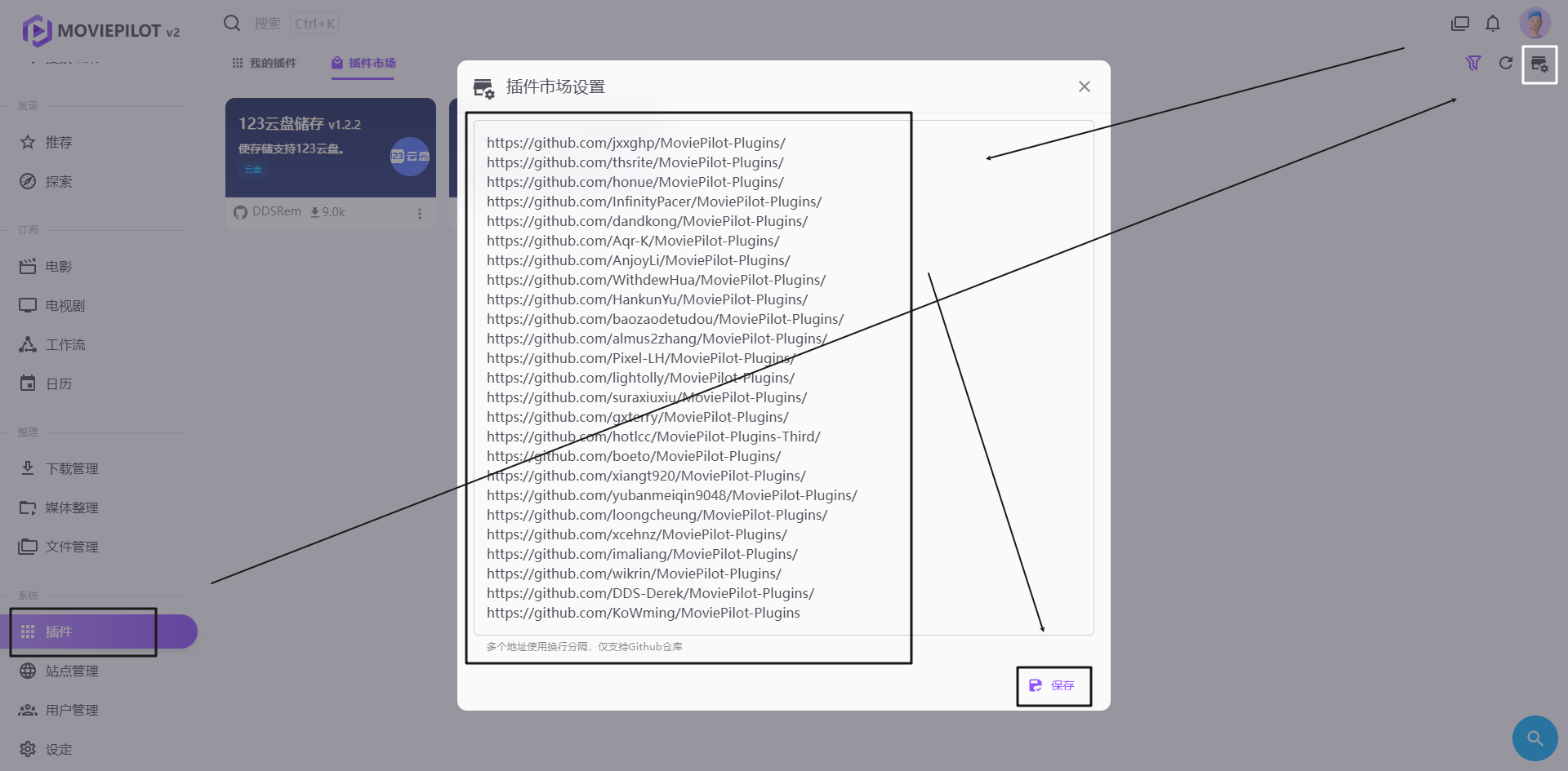 https://github.com/KoWming/MoviePilot-Plugins添加插件