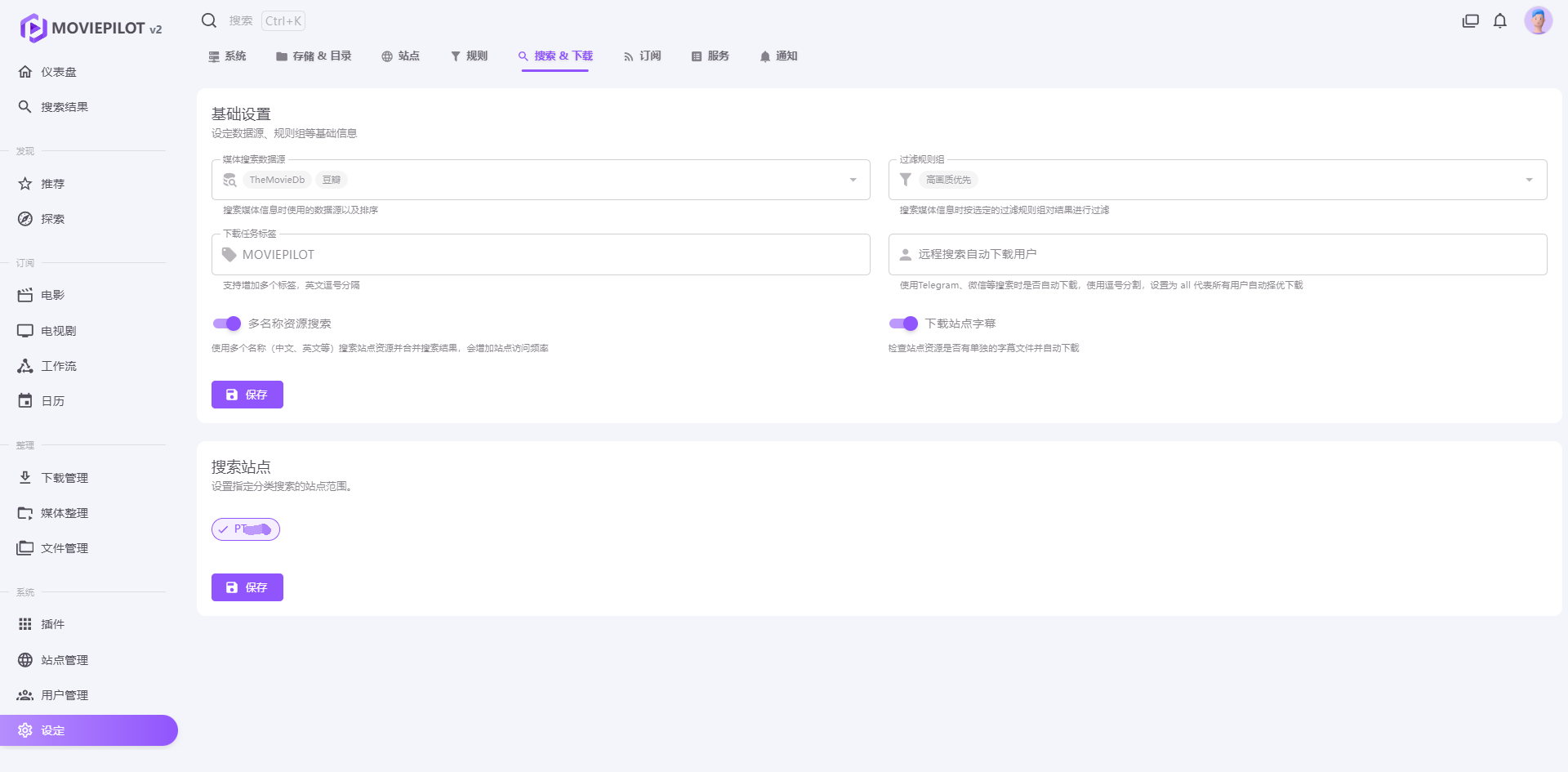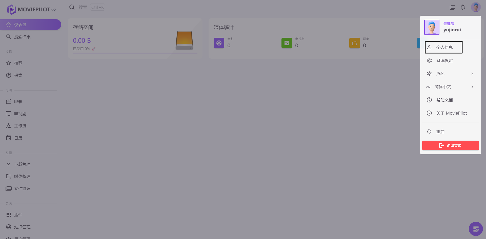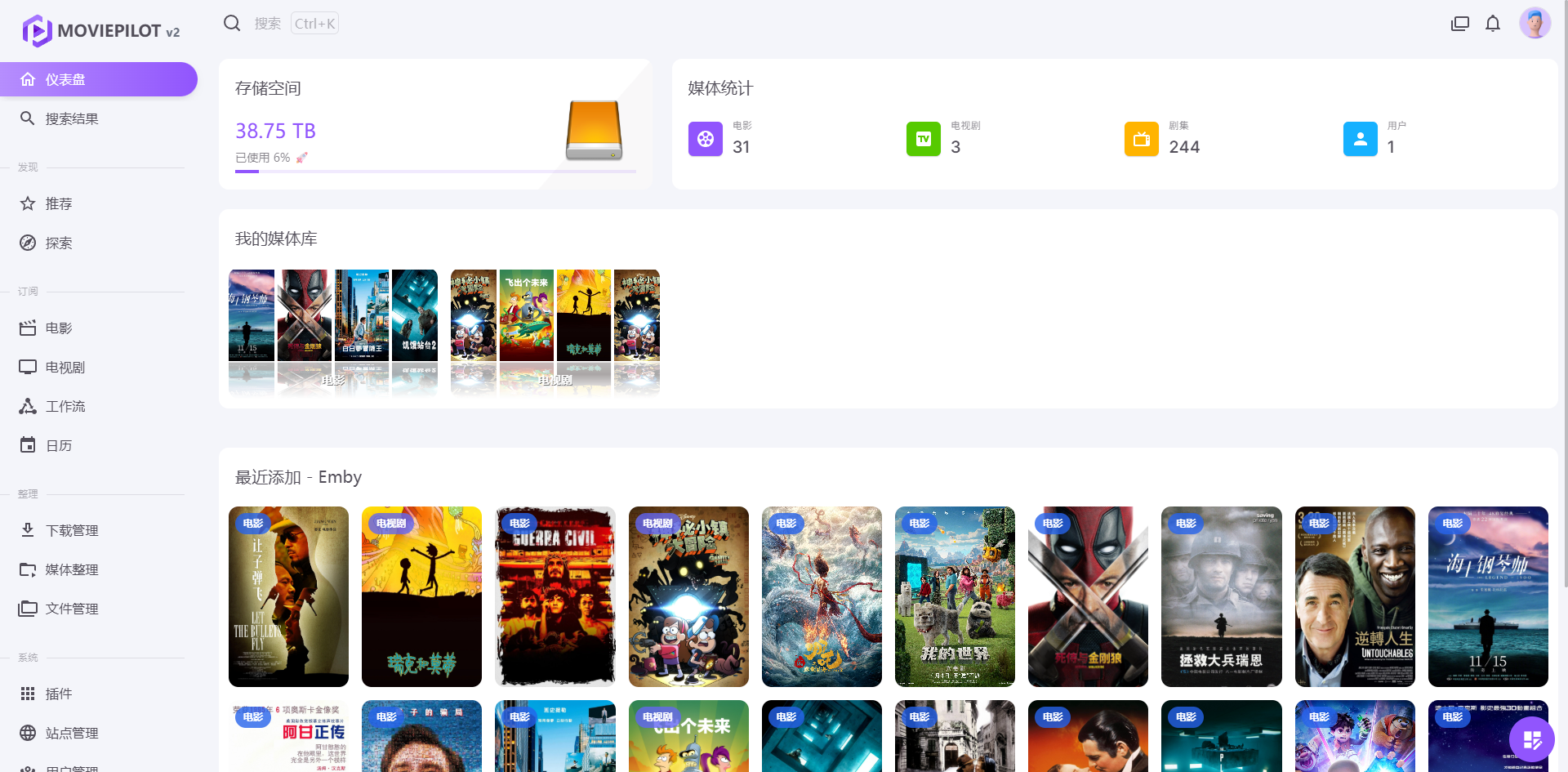 现在你就可以使用你的MoviePilot了,整体MoviePilot的配置还是很简单的,如有问题可以在下方评论区提出