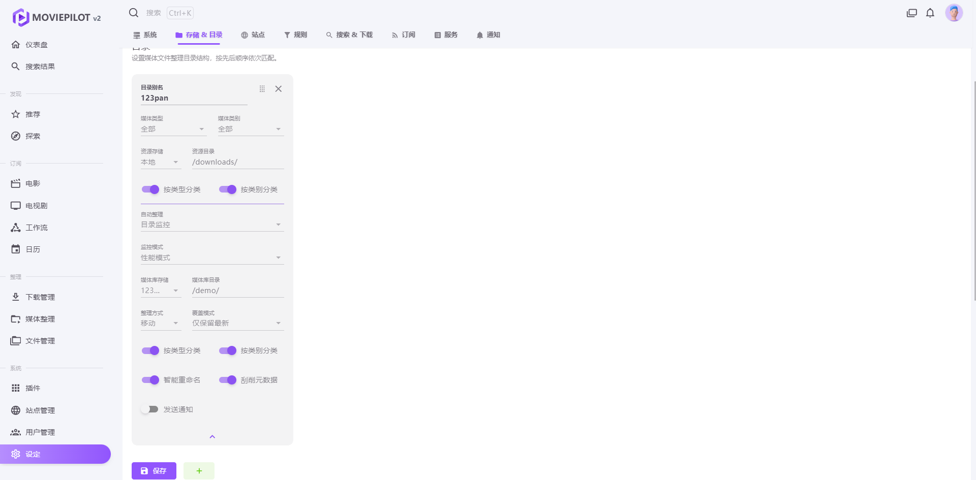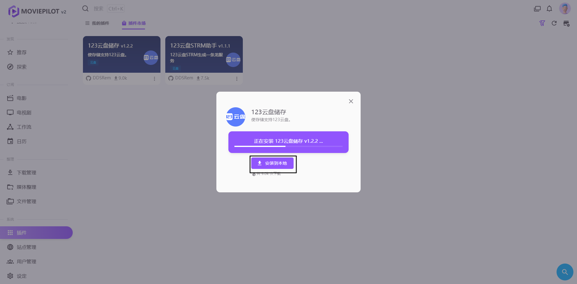 具体原理是媒体文件会先下载到本地,然后经过MoviePilot整理到123云盘上