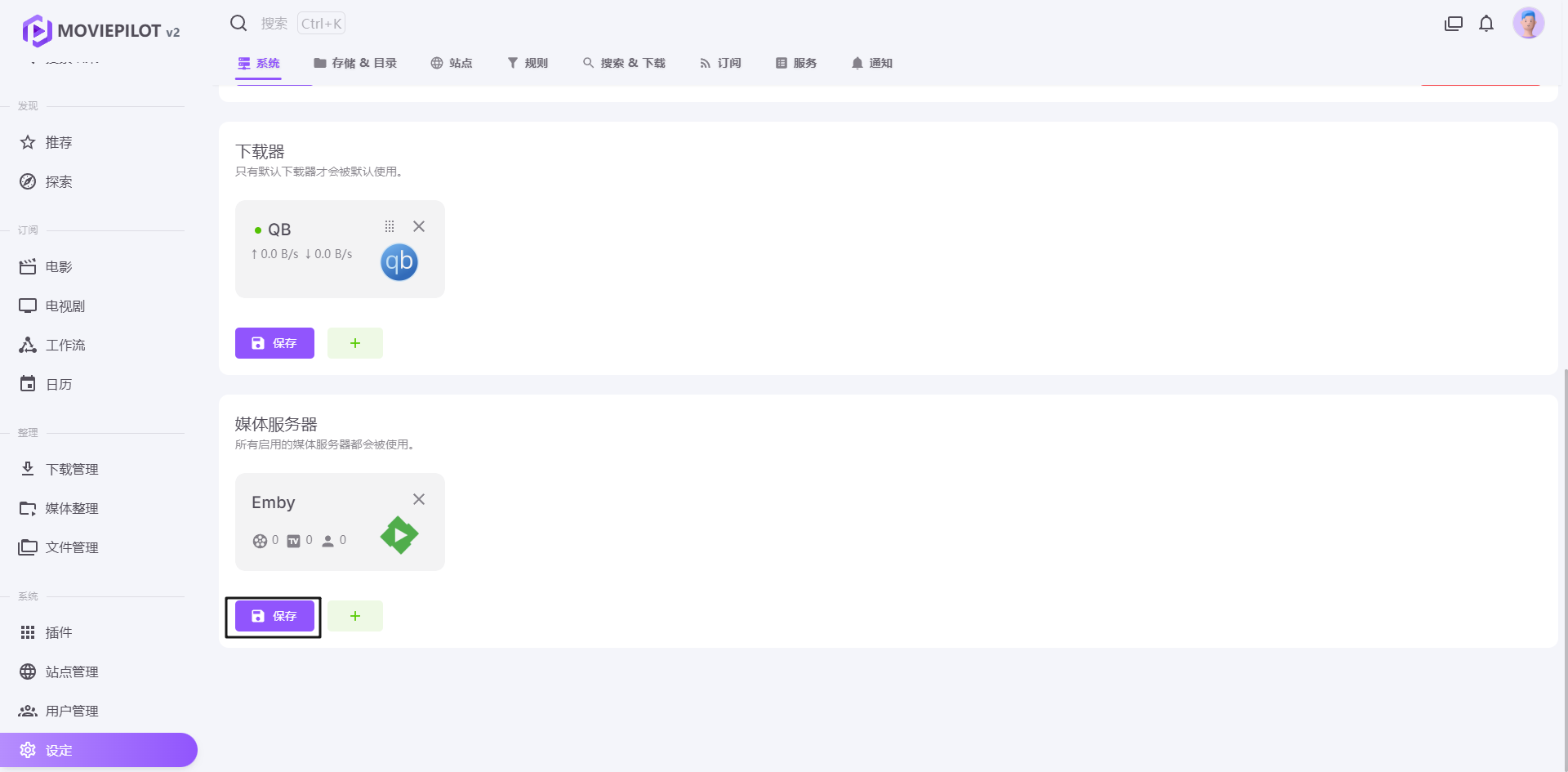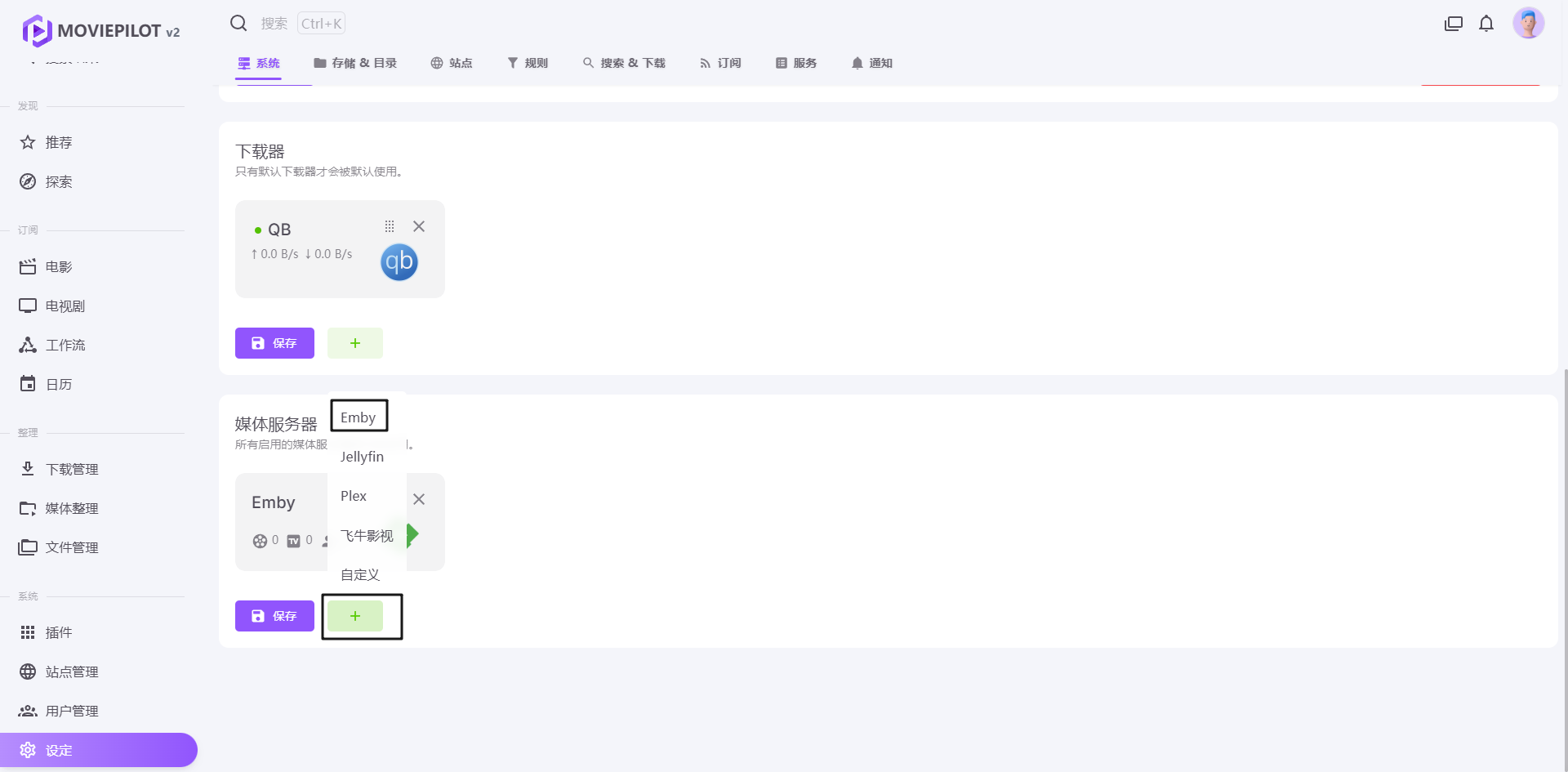 jxxghp/moviepilot-v2 emby/embyserver linuxserver/qbittorrent