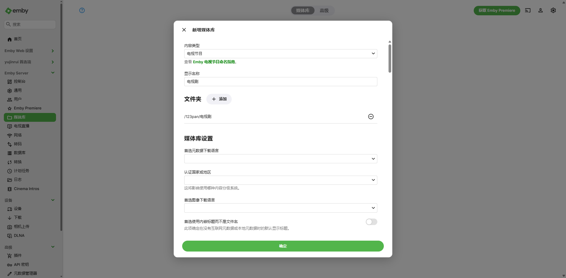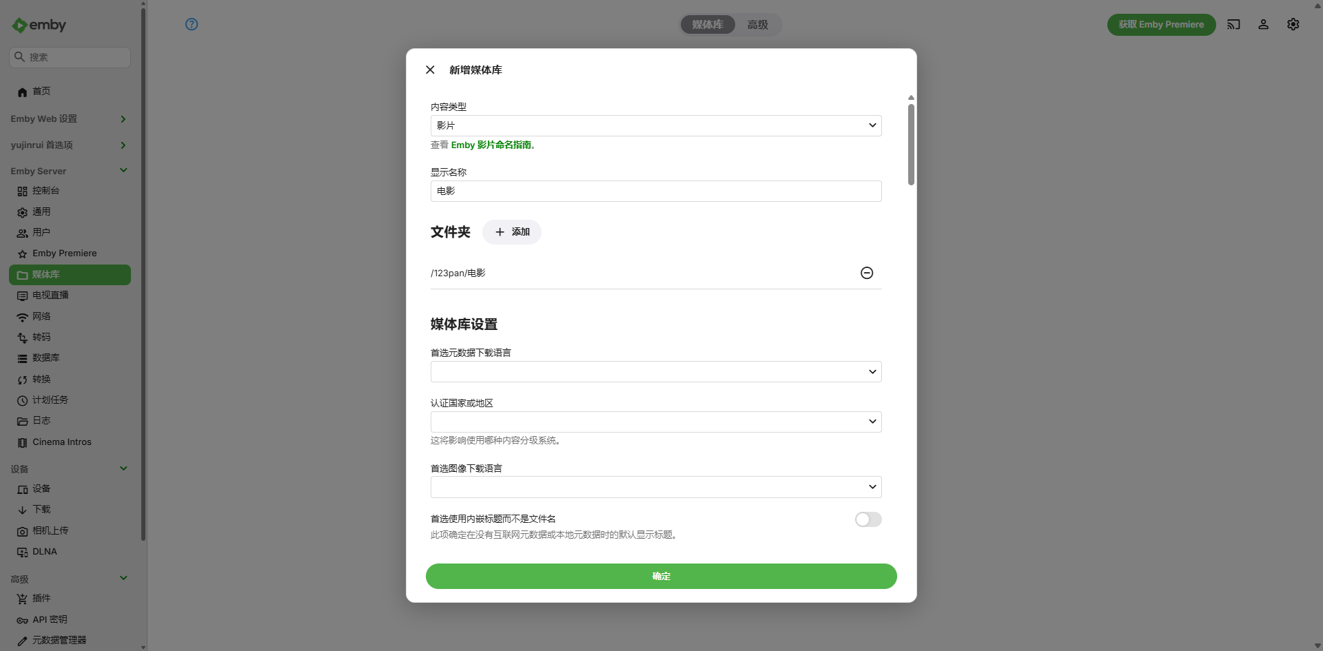 大家可以直接抄作业 媒体库文件填入自己123云盘媒体库文件夹地址